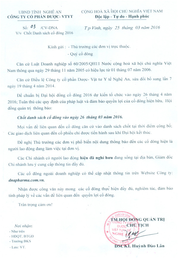Nghị quyết HĐQT 14/3/2019 V/v Chốt danh ...