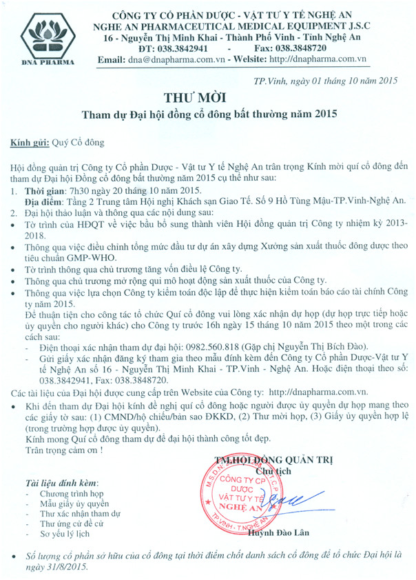 Thông báo đại hội đồng cổ đông bất thường năm 201516:01 - 24/08/2022Quan hệ cổ đông, Tin tức DNA, Tải xuống tai lieu dhcd bat thuong nam 2015 - dnapharma.rarChia sẻ: